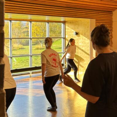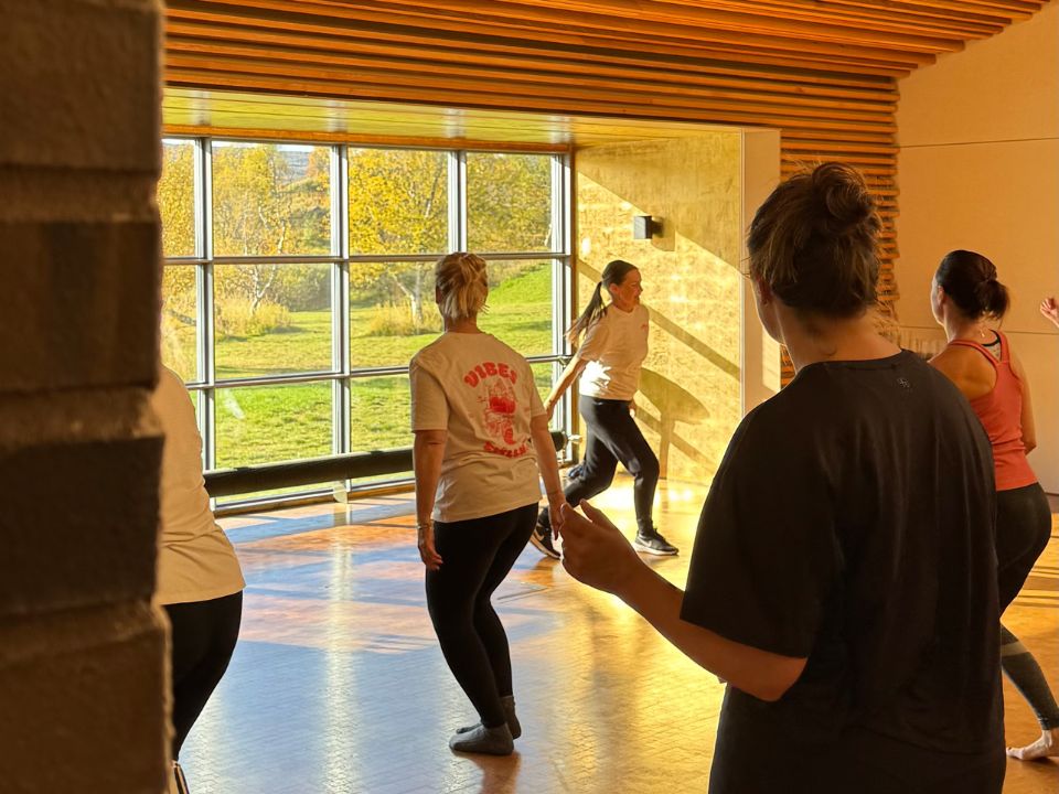 Alla dagar fanns det möjlighet att starta med yoga i Aula Capella och/eller morgongympa utomhus. På eftermiddagarna kunde man välja mellan träning i Ladan eller dans i Aula Capella.