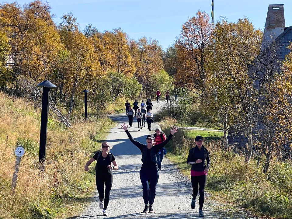 På lördagen väntade nya äventyr: man kunde välja mellan att springa till Bolagen eller vandra till Volldalshøgda. Vandrargruppen fick en blöt men härlig tur mellan tuvor och spänger, men belöningen på toppen var väl värd mödan – många tog ett uppfriskande dopp i den naturliga infinitypoolen och matsäcken avnjöts med panoramautsikt över fjällvärlden.