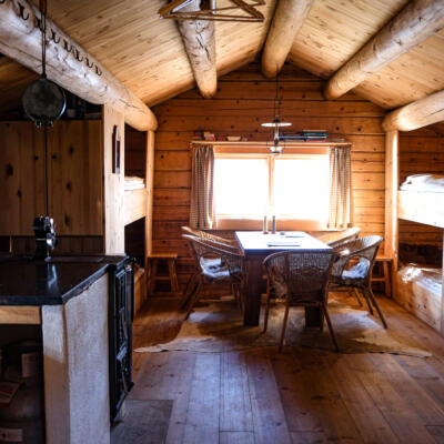 Stugan är idealisk som bröllopssvit, för skidåkning, jakt- och fiskeexpeditioner, företagsutflykter och möten. Vi erbjuder förstklassig mat packad i ryggsäckar eller en egen kock.