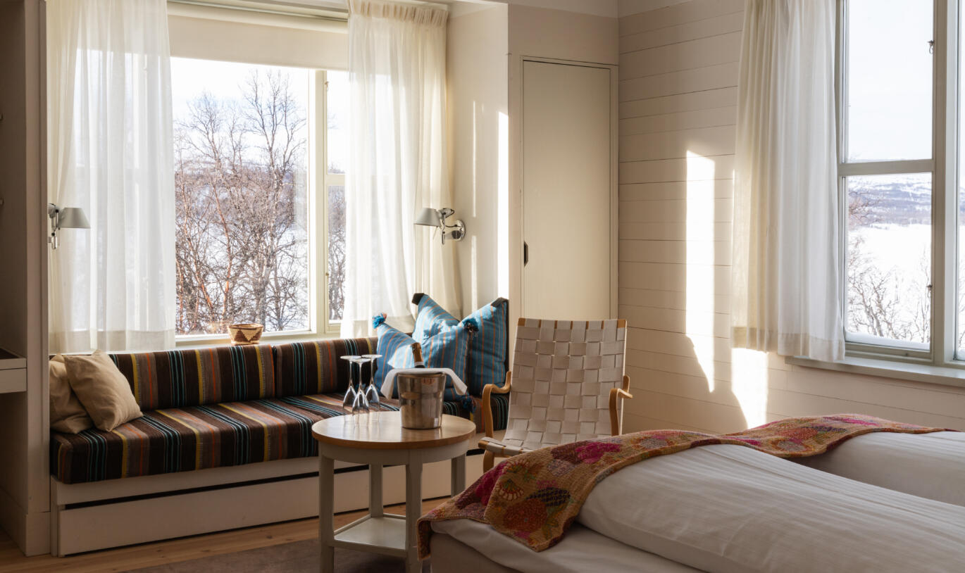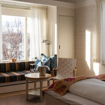 När kinderna blivit rosiga och benen trötta väntar Mii Gullo Spa – med varma bad, uppfriskande dopp i fjällsjön, bastu och vidsträckta vyer. Kvällarna rundas av med en vällagad middag i Restaurang Näset. Du bor bekvämt med naturen precis utanför dörren – nära spår, backar och fjäll.
